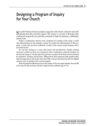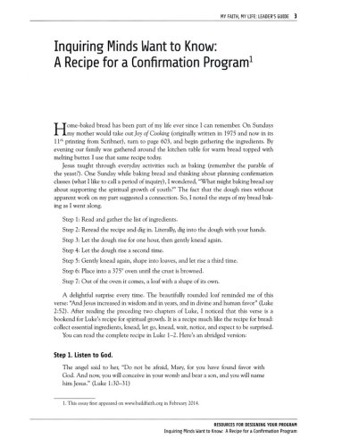 In addition to a book for teens, My Faith, My Life is a curriculum. With this guide, leaders can create short, intermediate, and longer programs, including confirmation sequences of six, nine, or twelve-sessions, a retreat or similar short program, or a longer study that is integrated with other current programs over the entire academic year. Filled with prayers to begin and end each session, plus a variety of activities that tap into multiple learning styles and ways to interact with the congregation, this will be a primary go-to resource for any youth leader. New material includes how to select, train, and support mentors, as well as how leaders can strengthen their own spiritual life.