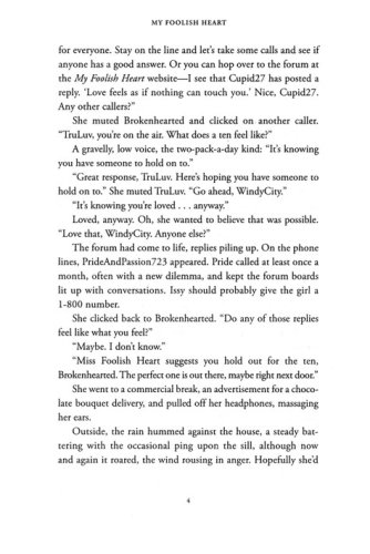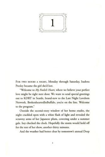 Unknown to her tiny town of Deep Haven, Isadora Presley spends her nights as Miss Foolish Heart, the star host of a syndicated talk radio show. Millions tune in to hear her advice on dating and falling in love, unaware that she’s never really done either. Issy’s ratings soar when it seems she’s falling in love on-air with a caller. A caller she doesn’t realize lives right next door.