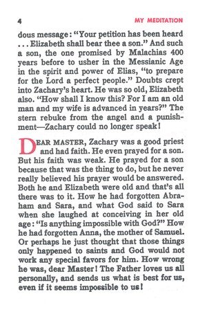 Only by prayerfully considering the Gospel and its meaning on a daily basis can we draw ourselves closer to unity with Jesus. My Meditation on the Gospel is the ideal book for careful, daily study of God’s Word.