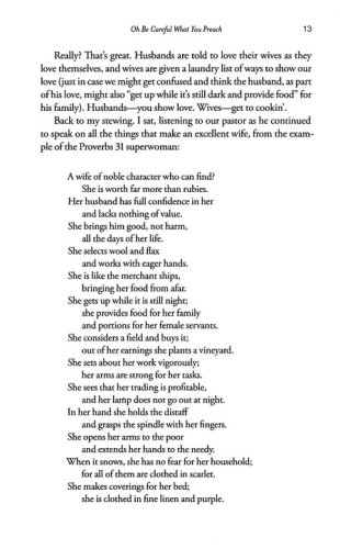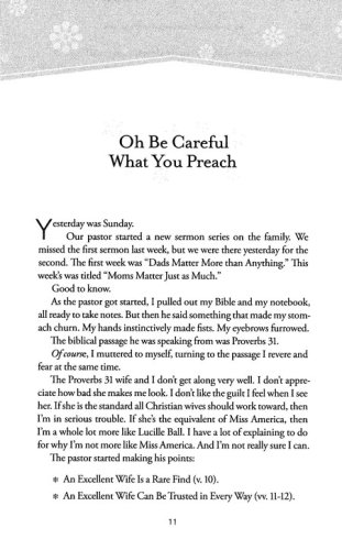 With humility and humor, Sara sets out to pursue the Proverbs 31 characteristics through immersing herself in all things domestic, but when her family's situation changes and she must return to a full-time job, she's forced to look at the Proverbs 31 woman with a whole new viewpoint. Through it all, she and readers discover:
