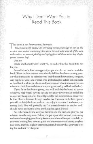 This unique, entertaining, and thought-provoking personal account will challenge women to throw out their preconceived notions of what a submissive wife looks like and seek fresh leading from God for their lives and marriages today.