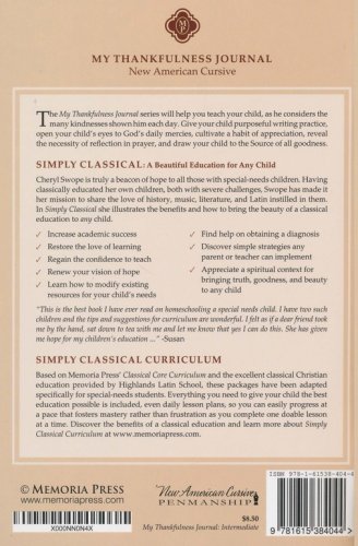 Cultivate an attitude of gratitude and a habit of prayerful praise with My Thankfulness Journal: Intermediate. As students recall the pleasant details of the day, they receive clear guidance for sharing thoughts in prayer. Each page also provides a verse of Scripture (KJV) for memory work or meditation. Handwriting examples are in New American Cursive.