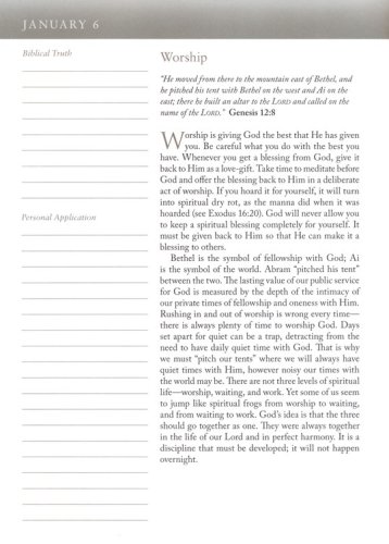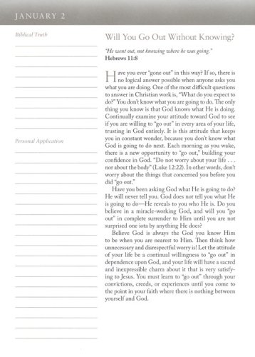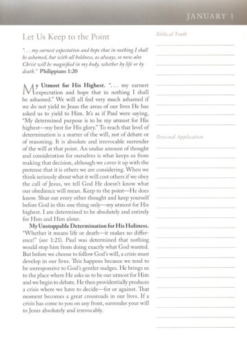 Whether you’re an Oswald Chambers devotee or new to his books, you’ll appreciate this combination devotional and journal. The daily meditations from My Utmost for His Highest will inspire you to "go deep" and contemplate your faith journey. And each day’s page has special sections—Biblical Truth and Personal Application—with space to journal your thoughts and the spiritual truths that God is revealing. This devotional journal is an ideal way for you to meditate, pray, and ponder each day.