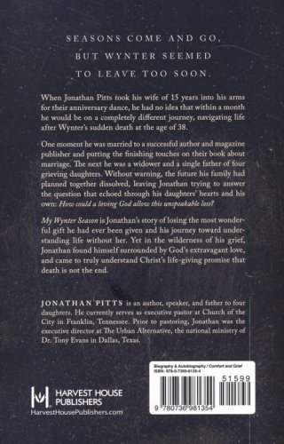 My Wynter Season is Jonathan’s story of losing the most wonderful gift he had ever been given and his journey toward understanding life without her. Yet in the wilderness of his grief, Jonathan found himself surrounded by God’s extravagant love, and came to truly understand Christ’s life-giving promise that death is not the end.