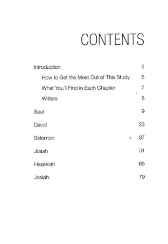 Kings of Israel were ordained by God himself to lead the people of Israel. Although sometimes the kings’ actions were motivated by power, greed, or selfishness they were also sincere followers of God. These kings show us how our focus’ whether on God’s kingdom or on the things of this earth??can so quickly and fundamentally change our intentions. Visit iamnamed.com to view more samples.Session 1: SaulSession 2: David Session 3: SolomonSession 4: JoashSession 5: JosiahSession 6: Hezekiah