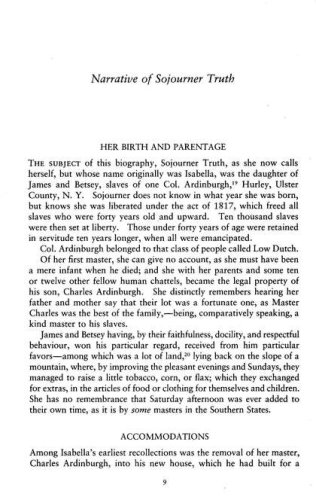 Truth's landmark slave narrative chronicles her experiences as a slave in upstate New York and her transformation into an extraordinary abolitionist, feminist, orator, and preacher. Based on the complete 1884 edition, this volume includes the "Book of Life," a collection of letters and sketches about Truth's life written subsequent to the original 1850 publication of the Narrative, and "A Memorial Chapter," a sentimental account of her death.