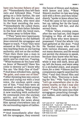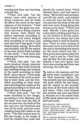 Durable Smyth-sewn, lay-flat binding Two-column text format Robust end-of-page cross-reference system Topical subject headings 16-point type size Words of Christ in red Footnotes Gilded page edges Ribbon marker Topical Index Presentation page for gift-giving Full-color maps 7.0625" x 10.25" page size
