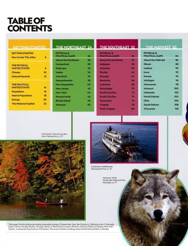 Physical maps of each geographic region make it easy to see the mountains, rivers, lakes, deserts, and prairies that make up America’s diverse landscape. Vibrant, full-color photo essays bring each region to life.