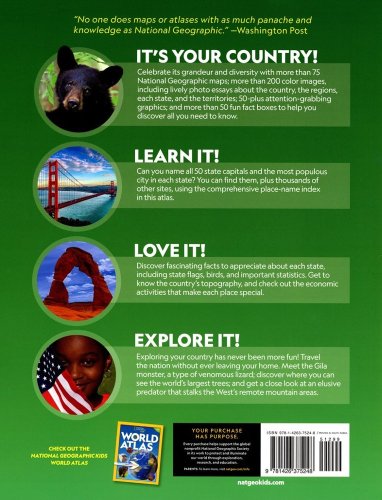 Count on National Geographic to bring you the very best U.S. atlas for school and family use. The perfect reference for kids to learn about all 50 states, U.S. territories, and Washington, D.C.!