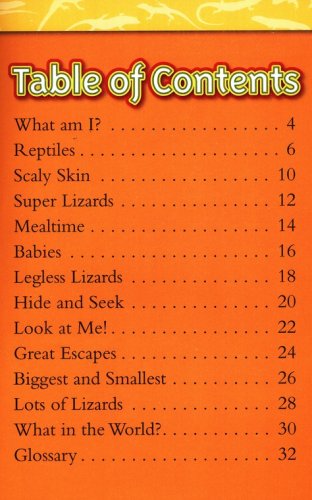 From geckos to iguanas, komodo dragons to chameleons, lizards are about the most awesome animal around! They inhabit every continent except Antarctica. Some are lethal. Some change color. Some have suction cups on their feet. There is enough fascinating information about these animals to fill an entire library of readers! But we've taken the absolute coolest information about the coolest animal and compacted it in this fascinating level 2 reader, perfect for anyone who loves slippery, slimy, creepy, and crawly.