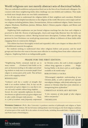 For all who want to understand the religious faiths of their neighbors and coworkers, Winfried Corduan offers an introduction to the religions of the world. His survey covers major and minor religions including Judaism, Islam, Zoroastrianism, African traditional religions, Native American religion, Hinduism, Buddhism, Jainism, Sikhism, Baha’i, Chinese popular religion, and Shinto and Japanese religions. Neighboring Faiths emphasizes not just formal religious teachings but also how each religion is practiced in daily life. Dozens of photographs, charts and maps help illustrate how the faiths are lived out in contemporary culture. Moving beyond mere description, Corduan offers specific suggestions for how Christians can avoid giving unnecessary offense to followers of these faiths while engaging them in constructive dialogue. This edition has been thoroughly revised and expanded, with a new chapter on Islam after 9/11 and additional material throughout.
