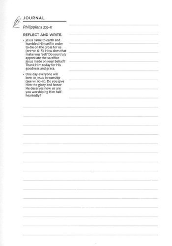 Clear and readable Thomas Nelson NET TypefaceThick paper suited for journalingBrief book introductionsInnovative Scripture-engagement promptsHandheld size for personal and group studyFlexible sewn bindingStunning cover artwork by Stephen Crotts