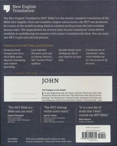 Featuring the New English Translation—the newest translation of the biblical languages into English, based on the most up-to-date manuscript discoveries and research—the NET Bible Journal Edition is the perfect choice for anyone who puts pen to paper to engage more deeply with the Word.