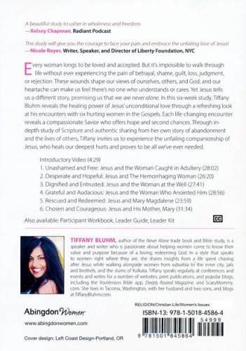 From the time we’re little girls, we long to be loved and accepted—from the playground to the lunchroom to the places where we live and work as grown women. We do our best to prove we’re lovable and to avoid being left all alone. But the truth is that it’s impossible to walk through life without experiencing the pain and loneliness of betrayal, shame, guilt, loss, judgment, or rejection. These wounds can shape our views of ourselves, others, and God and even make us question if we are worthy of love and acceptance. Whether old or new, our heartache can convince us there’s no one who understands or cares. Yet Jesus tells us a different story, promising us that we are never alone. In this six-week study, Tiffany Bluhm reveals the depth and healing power of Jesus’ unconditional love for us through a refreshing look at encounters He had with six shame-filled, hurting women in the Gospels: the woman caught in adultery, the hemorrhaging woman, the woman at the well, the woman who anointed Him, Mary Magdalene, and Mary, the mother of Jesus. Each life-changing encounter reveals a compassionate Redeemer who offers hope, second chances, and grace-giving love—helping us to recognize and embrace our own incredible value as well as our indispensable role in the Kingdom. With powerful teaching and authentic sharing from her own life and the lives of others, Tiffany invites us to find healing for our deepest hurts as we experience the unfailing companionship of Jesus—the Rescuer and Redeemer of broken lives and wounded hearts. The Leader Kit is an all-inclusive box containing one copy of each of the Bible study’s components. The kit includes a Participant Workbook, Leader Guide, and a DVD with six 20-25 minute sessions (with closed captioning).