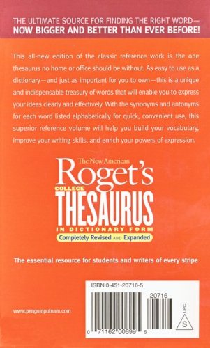 This all-new edition of the classic reference work is the one thesaurus no home or office should be without. As easy to use as a dictionary—and just as important for you to own—this is a unique and indispensable treasury of words that will enable you to express your ideas clearly and effectively. With the synonyms and antonyms for each word listed alphabetically for quick, convenient use, this superior reference volume will help you build your vocabulary, improve your writing skills, and enrich your powers of expression.