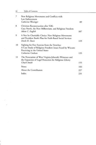 New nontraditional religious movements are the most likely groups to offend mainstream culture and the least likely to have representatives in government to ensure that their liberty is protected. These new religious movements are sometimes ostracized and subject to various forms of discrimination. As America becomes increasingly pluralistic, with more and more groups contributing to the nation's religious mosaic, new religious movements may well play an increasing role in the course of religious liberty in America, just as groups such as the Jehovah's Witnesses did formerly. This book explores the problems and possibilities posed by new religious movements for religious liberty in America.