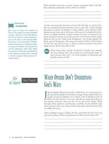 THIS BOOK IS THE FIFTH in a series of five books designed to provide a personal look at the lives of key characters found in the Bible. The theme Following God is one that emphasizes the importance of building a relationship with God, living a life totally surrendered to His leading. Examples are given of those who received blessing from a surrendered walk with God as well as those who did not follow His direction. This Bible study is designed in an interactive format, incorporating important Scriptural points of interest. Other features include a look at the characters mentioned from a historical perspective, as well as interesting facts about the time when these characters actually lived.