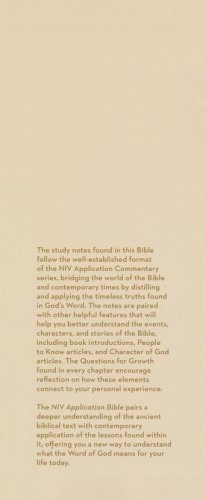 The NIV Application Bible pairs a deeper understanding of the ancient biblical text with contemporary application of the lessons found within it, offering you a new way to understand what the Word of God means for your life today.