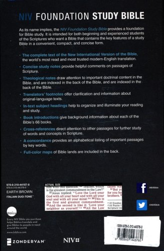 Intended for both beginning and experienced students of Scripture who want a Bible that contains the key features of a study Bible in a convenient, compact, and concise form, the NIV Foundation Study Bible is perfect for students, church leaders, and homeschool use.