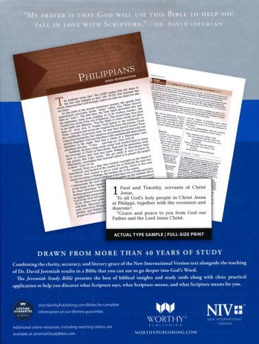 Drawn from more than 40 years of study, Dr. David Jeremiah, one of America's leading Bible teachers, has produced a deeply personal and comprehensive study Bible packed with features specifically focused to help you discover what Scripture says, what Scripture means and, most importantly, what Scripture means for you. The Jeremiah Study Bible presents the best of biblical insight and study tools along with clear, practical application to bring about authentic transformation in your life.