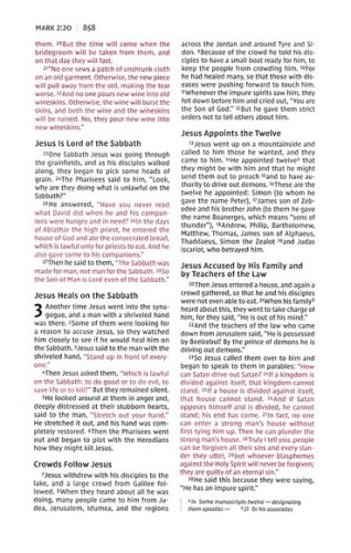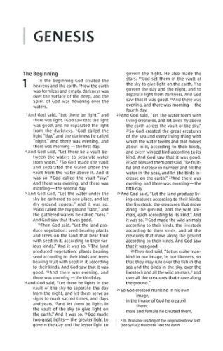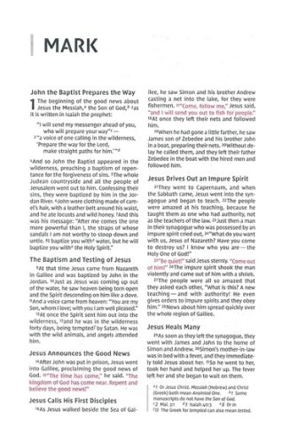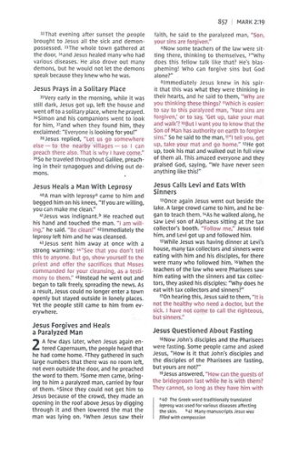7.5-point print sizeLess than one inch thickDouble-column formatWords of Christ in redPresentation pageTwo satin ribbon markers