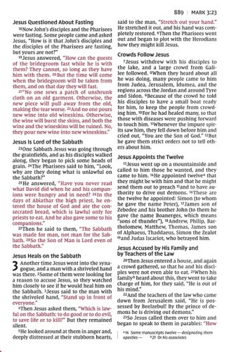 11-point print sizeLess than one inch thickWords of Christ in redDouble-column formatPresentation pageTwo satin ribbon markers