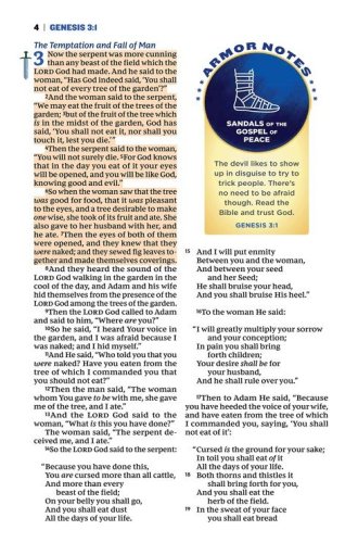 Devotionals and notes connect each piece of armor by icon to different verses throughout the Bible. In addition, numerous highlighted passages reinforce sharing their faith, encouragement to "be strong", and note where spiritual and physical battles take place. All these features work together for your child to be grounded and find strength in the Word of God.