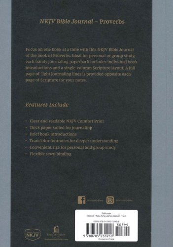 Focus on one book at a time with this NKJV Bible Journal of the Book of Proverbs. Ideal for personal or group study, each handy journaling paperback includes individual book introductions and a single-column Scripture layout with a full page of light journaling lines opposite each page of Scripture.
