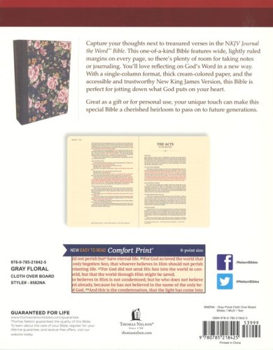 Designed with the exclusive Thomas Nelson NKJV Comfort Print® typeface Lined, wide margins for notes and reflections Premium paper for enduring note-takingWords of Christ in red Lays flat in your hand or on your deskTwo ribbon markers Easy-to-read 7-point print size