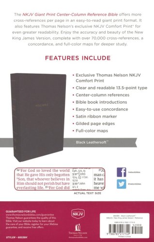 With the NKJV Comfort Print® Giant Print Center-Column Reference Bible, you won't have to sacrifice study features for readability. Center-column references, book introductions, a concordance, and full-color maps make this the go-to Bible you'll look forward to reading. Thanks to the exclusive Thomas Nelson NKJV Comfort Print® typeface in a giant print format, your eyes will also discover a whole new level of comfort.