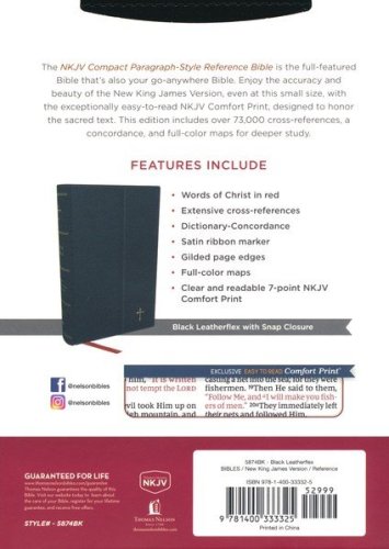 Review NKJV Compact Paragraph-Style Reference Bible, Comfort Print–leatherflex, black.
