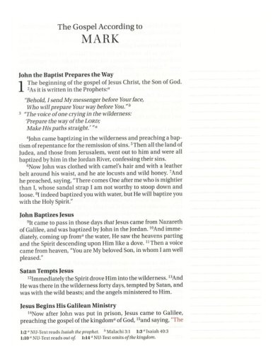 Wide lined margins provide space to reflect, journal or create art next to your favorite versesPremium paper limits bleed through ideal for taking notes in your BibleLays flat in your hand or on your deskWords of Christ in red quickly identify verses spoken by JesusSatin ribbon marker allows you to easily navigate and keep track of where you were readingLarge print 10-pt text eliminates eye strain when reading