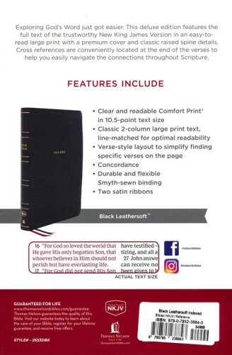 Exploring God’s Word on the go just got easier. This edition not only includes the full text of the trustworthy New King James Version in an easy-to-read large print, but it is also small enough for everyday use and easy navigation with thousands of cross-references conveniently located at the end of verses.
