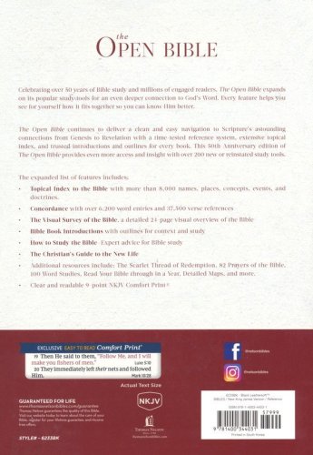 For over 50 years, The Open Bible has been a trusted resource for exploring and understanding Scripture. Join the millions who have navigated the treasures of God’s Holy Word with a powerful collection of topical tools, outlines, cross-references, articles, and more. With this time-tested Bible, you can trace the interconnected themes from Genesis to Revelation, easily find key teachings, and appreciate the beauty of this divinely inspired 66-book masterpiece.