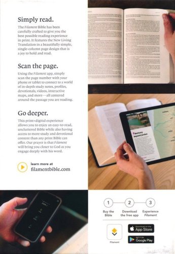 This Bible also includes exclusive access to the Filament App, available in the App Store and Google Play. Simply scan the page you are reading with your device’s camera. Your phone or tablet recognizes the page and instantly connects you to content centered around that passage.