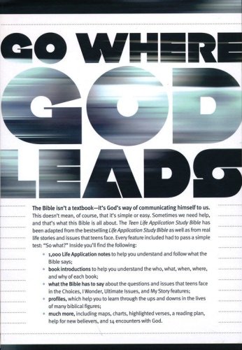Combining traditional study-Bible features like book introductions, textual notes, person profiles, and maps with application-oriented features focusing on choices, real-life issues, and real-life stories of actual teens, the Teen Life Application Study Bible helps teens understand and apply God's Word to all areas of their lives and encounter God in an authentic way.
