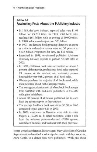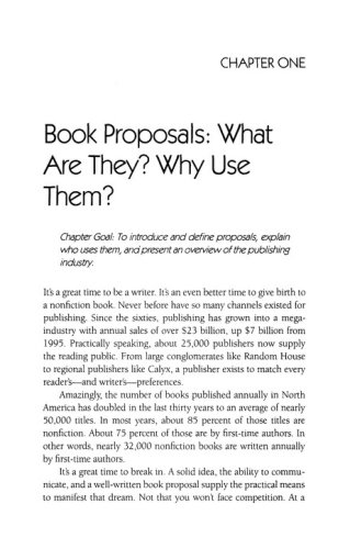 Sign the contract…then write the book. The good news is that almost every nonfiction book published is sold by a proposal. In this comprehensive yet accessible guide, you will learn exactly what a proposal is, what it must contain, and how to pull yours together into an informative, persuasive selling package. Already a favorite for thousands of aspiring writers, this book has been revised and updated by Elizabeth Lyon to feature nearly two dozen actual proposals, plus: