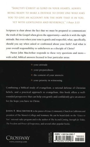 Scripture says that we must communicate the truth of the gospel when given the opportunity, and to do so with the right attitude. This book will help you gently and confidently give an answer for the hope you have in Christ.