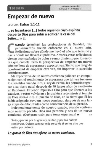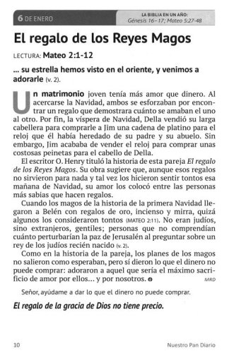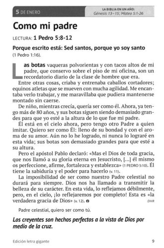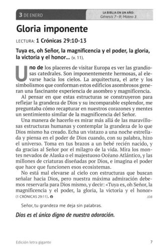 With our hectic lives, it’s easy for other things to interrupt or get in the way of spending time with the Lord. Our Daily Bread Voume 24 offers a meaningful way to consistently seek the Lord each day. This Spanish language 365-day devotional offers a meditation with a short story and Scripture passage that will help quiet your heart to hear from the Lord. Each author writes in way that makes you feel like you’re talking with a friend and provides encouragement to keep your heart focused on Jesus. To help you stay close to God and rooted in the Word, a read-through-the-Bible-in-a-year plan is included. All of this inspiration is contained in a beautifully bound book, featuring large print text.