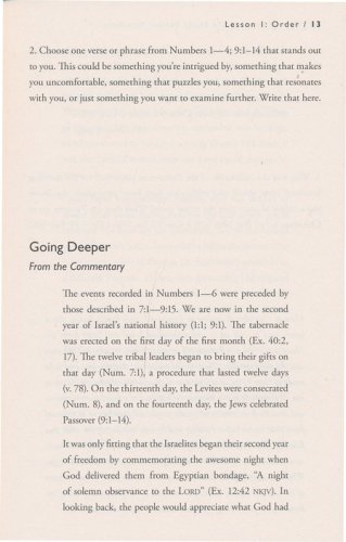 The fourth book of the Pentateuch, Numbers begins at Mount Sinai as every one of God's people fit to serve are counted in preparation to take possession of the Promised Land. Yet while thousands of God's people began the journey out of Egypt, through the wilderness and toward the Promised Land, only two from an entire generation are allowed to enter.