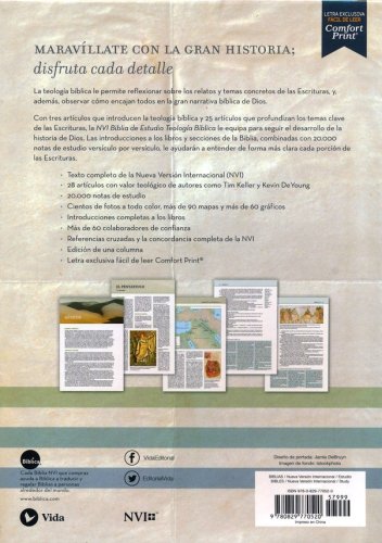 Complete text of the accurate, readable, and clear New International Version (NVI)28 theologically rich articles by authors such as Tim Keller and Kevin DeYoung20,000 verse-by-verse study notesHundreds of full-color photos, more than 90 maps, and over 60 chartsComprehensive book introductionsOver 60 trusted contributorsCross-references and the NVI Comprehensive ConcordanceSingle-column, black letter editionOne ribbon markersExclusive, easy to read Comfort Print® 9
