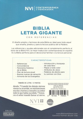 The references and additional tools are the perfect complements to the text of the NVI Bible, the best contemporary translation in Spanish. It is the ideal Bible for family devotion or personal reading.