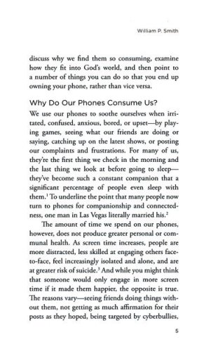 William P. Smith examines the why behind smartphone obsession and uncovers its connection to our desires for significance, belonging, security, and entertainment. The solution is not "more self control " but to experience the true soul satisfaction that comes from the gospel of Jesus Christ.