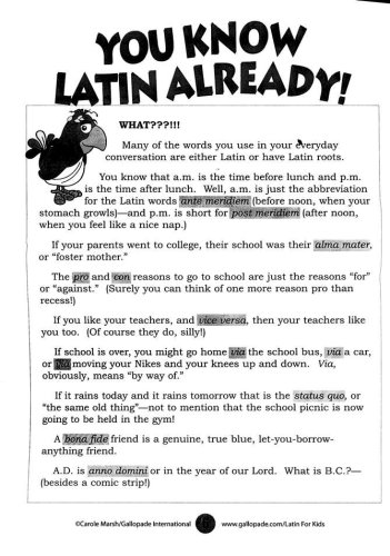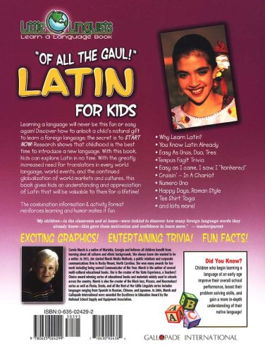 Why bother to learn a language that is called dead? Well, it's true that Latin isn't spoken any more but Latin lives! With this book, kids learn fascinating Roman history and trivia plus Latin words while they read silly stories and complete fun activities. This foreign language series for kids makes foreign languages easy and fun with educational and entertaining history, trivia, humor, activities, and more. Children who begin learning a language at an early age improve their overall school performance, boost their problem solving skills, and gain a more in-depth understanding of their native language.