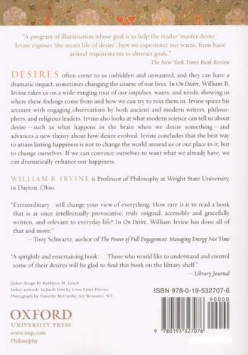 particular desires–and he advances a new theory about how desire itself evolved. Irvine also suggests that at the same time that we gained the ability to desire, we were "programmed" to find some things more desirable than others. Irvine concludes that the best way to attain lasting happiness is