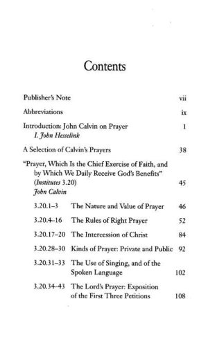 This book collects for the first time John Calvin's teachings on prayer, taken from his 1559 classic Institutes of the Christian Religion. Calvin scholar John Hesselink puts Calvin's views in context with an introductory essay for the book. A summary and questions for discussion precede each segment of Calvin's text, making this volume ideal for personal and group study.