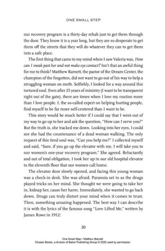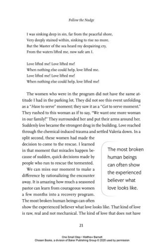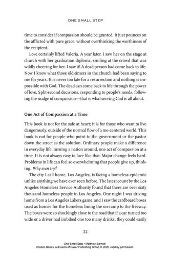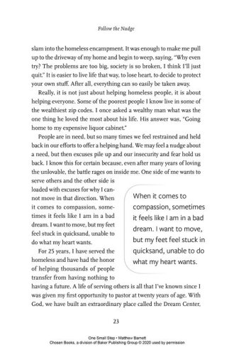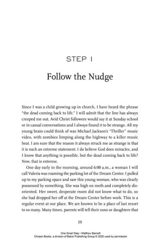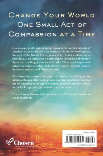 Can ordinary people make a lasting impact on the world around them? Matthew Barnett's answer is an emphatic Yes! In One Small Step, he shows that it is not as daunting as one might think. It all starts with a heart that is open to the leading of the Holy Spirit and a willingness to do as he leads. These small steps–most often very simple acts that can be done on a daily basis–require only our obedience and follow-through.