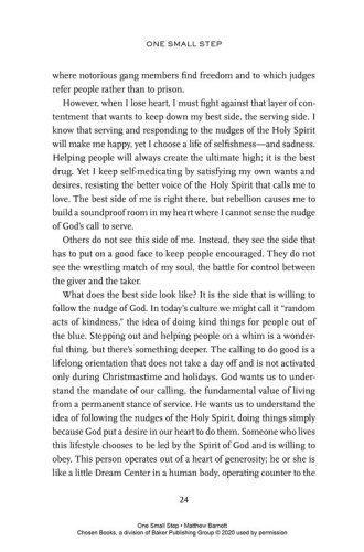 Review One Small Step: The Life-Changing Adventure of Following God's Nudges.