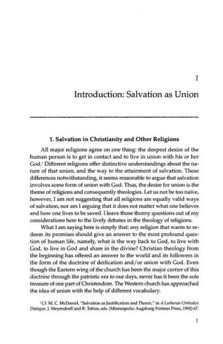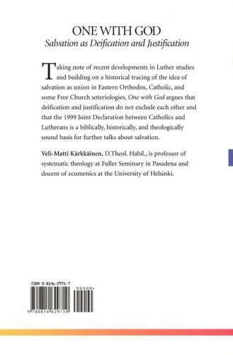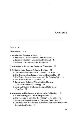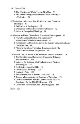 Chapters are Salvation as Union," *Justification in Recent New Testament Scholarship, – *Deification in the Eastern Orthodox Tradition, – *Justification and Deification in Martin Luther's Theology, – *Deification, Union, and Sanctification in Later Protestant Theologies, – *Salvation as Union: Towards an Ecumenical Convergence, – and *One with God: In Search of a Consensual View of Salvation. –