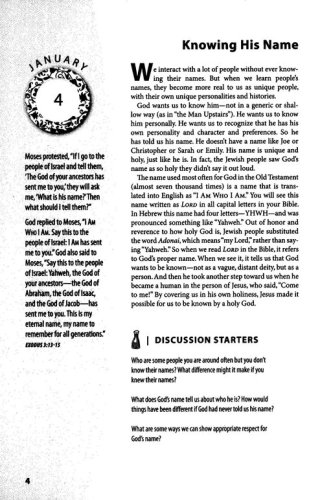 Getting the kids to turn off the TV and video games is challenge enough—let alone gathering as a family to read and discuss the Bible! One Year of Dinner Table Devotions & Discussion Starters helps families start where they are already gathered together on a daily basis—around the dinner table. As the meal comes to a close, family members can take turns turning to the dinner-table devotion for that day, designed to be done together as a family in 10 to 15 minutes. The result is a meaningful daily discussion in which every family member can participate, drawing the whole family closer to God . . . and each other.
